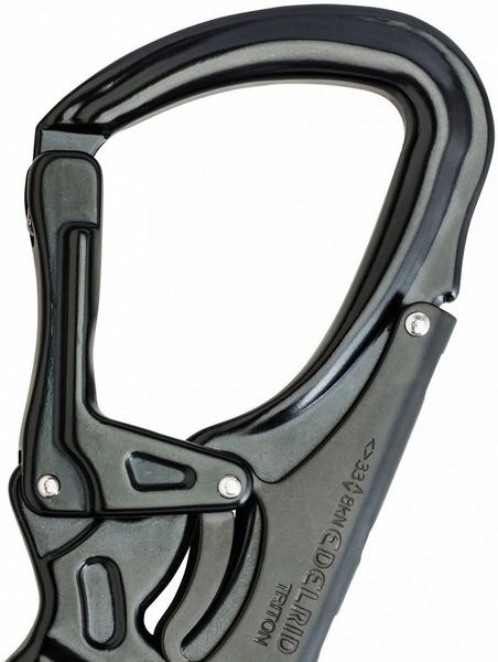 - Завдяки великому розміру карабін зручніше приєднувати до товстих мотузок і тросів, а також працювати з ним у рукавичках.