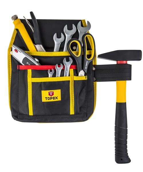 Карман для інструменту TOPEX виготовлений з міцної пластмаси і тканини. Має 4 відділення для інструменту і захоплення для кріплення молотка. Кріпиться до брючному ременя. Бренд TOPEX призначений для домашніх майстрів.