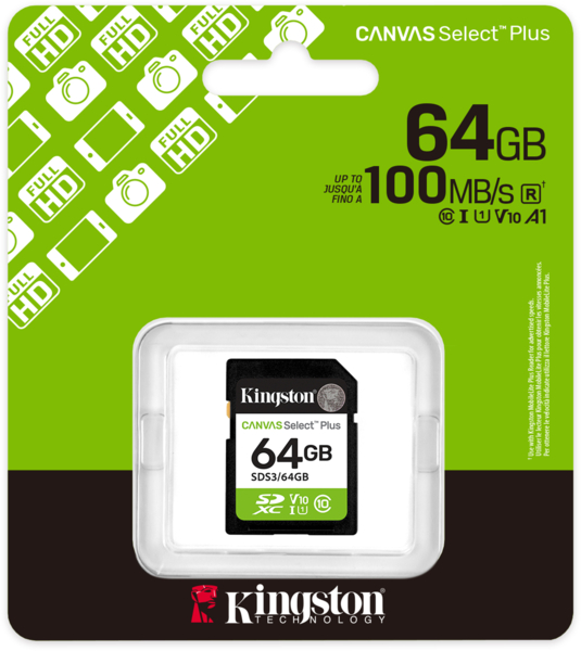 - Карта пам'яті Kingston SD 64GB C10 UHS-I V10 R100MB/s (SDS3/64GB)