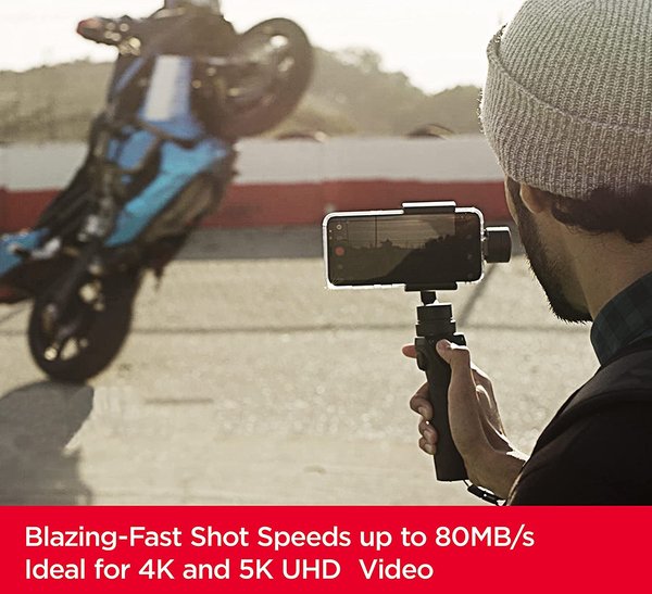 Це ідеальне рішення для знімання під час активного відпочинку, поїздок на вихідні та спортивних заходів, де цінний кожен кадр. Швидкісний клас 3 за стандартом UHS (U3) та швидкісний клас відео 30 (V30) карти пам'яті SanDisk Extreme microSD UHS-I місткістю до 1 ТБ означають, що за її допомогою можна записувати відео з роздільною здатністю 4K UHD та Full HD без перешкод.