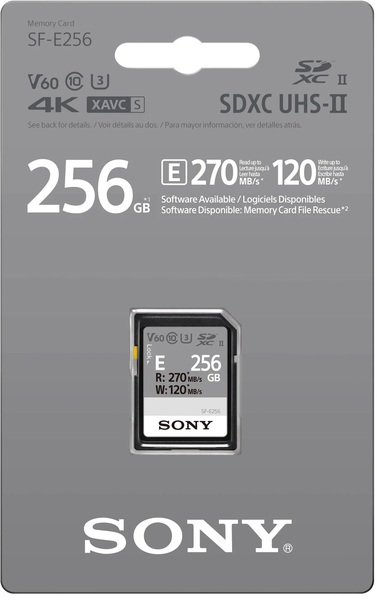 SD-карти серії SF-E забезпечують переваги стандарту UHS-II, зокрема записування даних зі швидкістю до 120 Мбіт/с, зчитування – до 270 Мбіт/с, а також підтримку класу V60, UHS 3 (U3) і Class 10 для SD-карт. Легендарна надійність виробів Sony притаманна й цим картам серії SF-E, що захищені від води, пилу, падінь, ультрафіолетового й рентгенівського випромінювання.