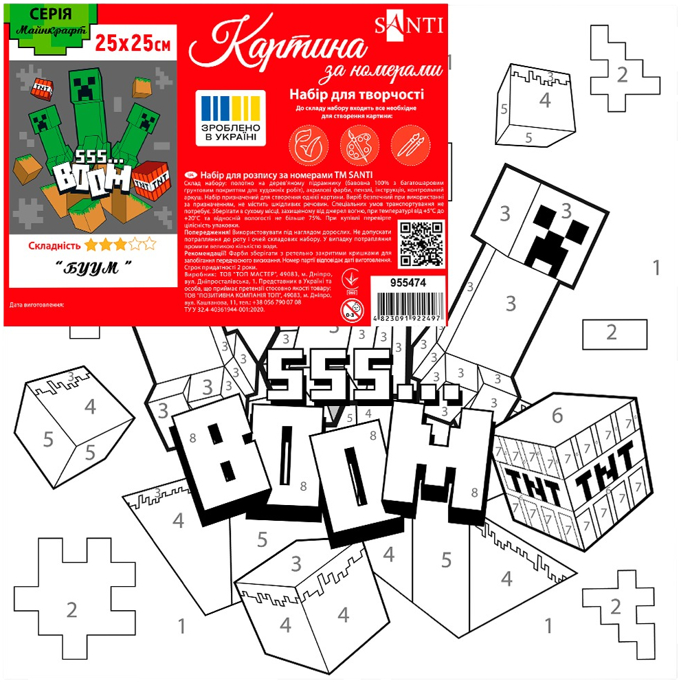 - Картина за номерами Santi Майнкрафт. БУУМ, 25*25см (955474)
