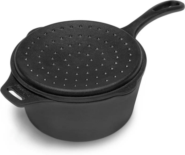 Особлива конструкція кришки з «пухирчастим» дном повертає ароматні випари назад у страву. Це дозволяє готувати неперевершені касеролі — запіканки з мʼяса та овочів, із соковитою текстурою та хрумкою сирною скоринкою. Традиційно касеролі приправляють перцем, травами й часником. У каструлі Petromax Cast-iron Saucepan запашний вершково-пряний букет не тільки збережеться, а й збагатиться секретним інгредієнтом — тонким ароматом копчення, який надає лише чавунний посуд.