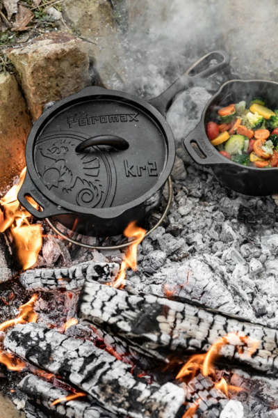 Лита чавунна жарівня з кришкою і довгою ручкою від німецького бренду Petromax. Однаково підходить для готування на природі та вдома, сумісна з усіма джерелами тепла.