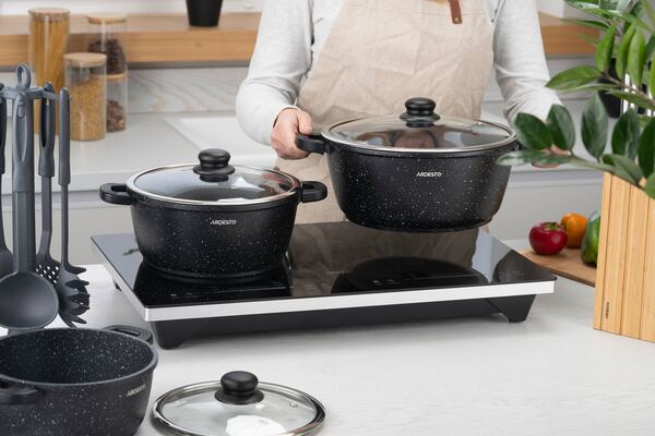 - Каструля Ardesto Gemini Anzio 6.4л, чорний марму, алюміній (AR2426GE)