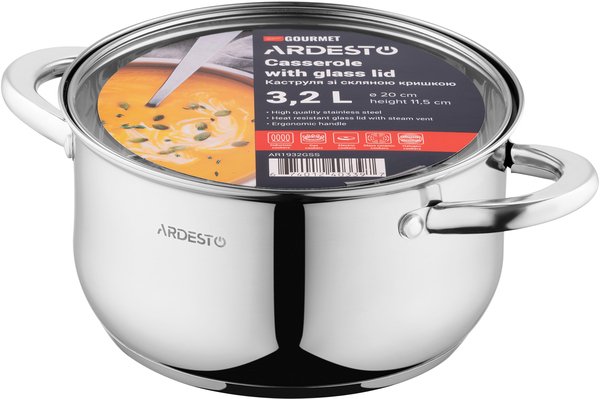 Каструля зі скляною кришкою Ardesto Gemini Lucca, 2.3л, нержавіюча сталь (AR4323LC)Каструля зі скляною кришкою Ardesto Gemini Lucca, 2.3л, нержавіюча сталь (AR4323LC)