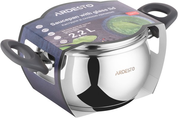 Каструля Ardesto Gemini Cremona, скляна кришка, 2.2 л, нержавіюча сталь (AR4322GA)