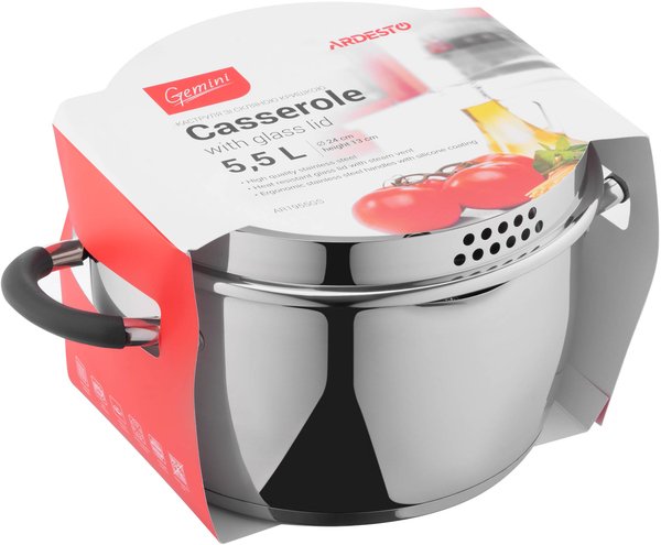 Каструля Ardesto Gemini Livorno, скляна кришка, 5.5 л, (AR1955GS)