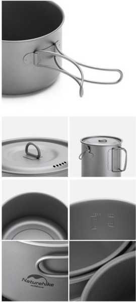 - Каструля титанова зі складаною ручкою 800 мл Naturehike NH18T101-A