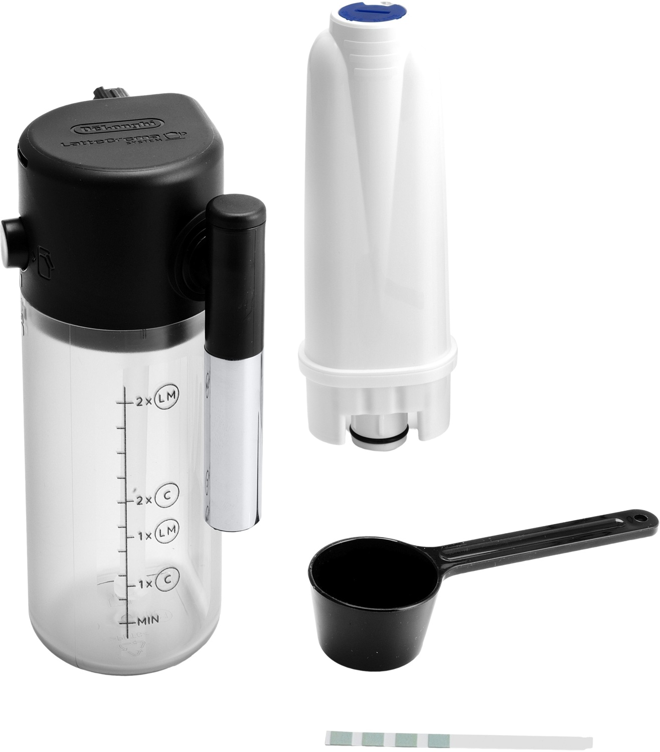 | Комплектація (можливі зміни в різних поставках) | Документація, Контейнер для молока, Кавомашина, Мірна ложка, Піддон для крапель, Резервуар для води, Тестова смужка для визначення жорсткості води, Фільтр |