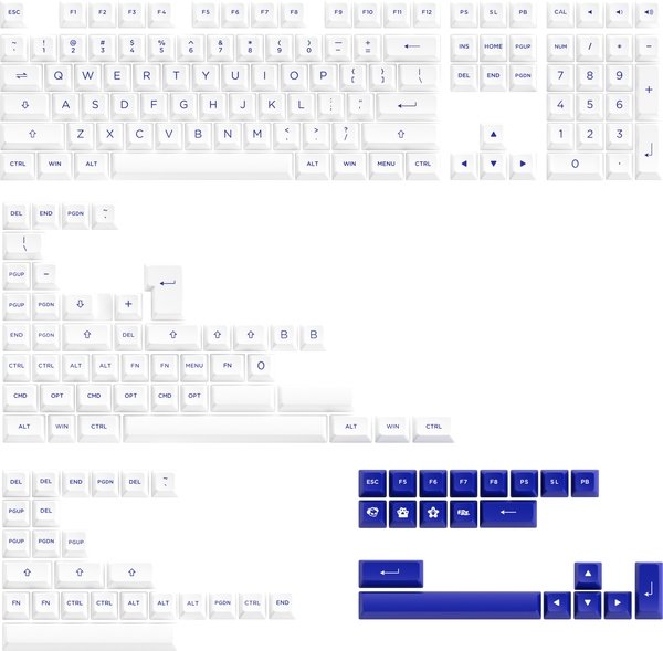 Підтримує клавіші введення ISO, зсув на 1 дюйм, зсув на 1,25 дюйма, зсув на 2 дюйми, розділений пробіл, модифікатори mac та запасні клавіші - загалом 197 клавіш у повному наборі.