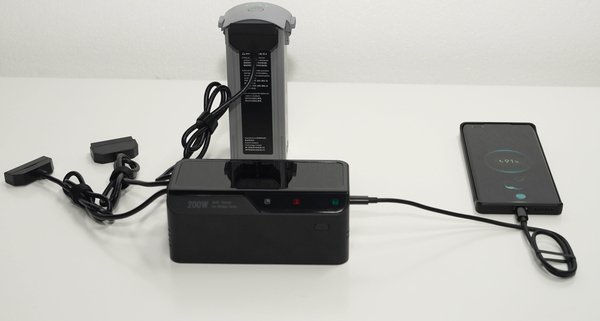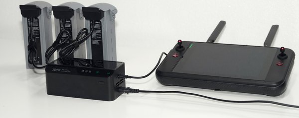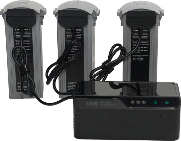 - Потрійна зарядка акумулятора: Мультизарядний пристрій здатний заряджати до трьох акумуляторів одночасно. Ця функція особливо корисна для користувачів, які потребують декількох батарей для тривалих польотів або зйомок. Вона усуває необхідність послідовного заряджання та зменшує час простою.