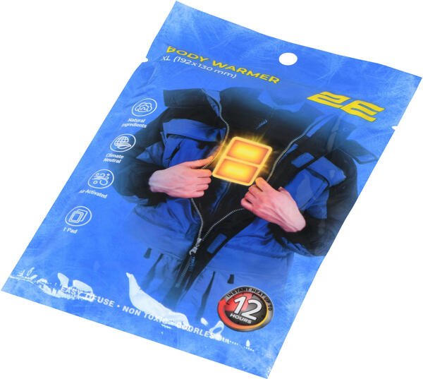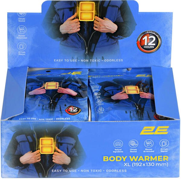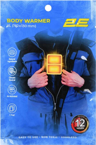 Хімічні грілки для тіла 2E – це одноразовий, персональний засіб для локального обігріву. Розмір виробу 192 × 130 мм. Час дії після активації – до 12 годин. Середня температура грілки приблизно 53 °C, проте максимальна може сягати 58 °C, тож виріб може зумовити жар, а в разі надмірного застосування може спричинити локальні опіки чи подразнення шкіри. Важливо: якщо під час використання грілка занадто гаряча чи просто незручна, негайно зніміть її.