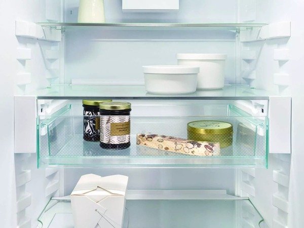 Суворий, яскравий і привабливий – таке враження чекає на Вас при кожному відкритті Вашого Liebherr. Це забезпечується, зокрема, прозорими скляними полицями із безпечного скла. Ви зможете їх швидко та легко відрегулювати по висоті одним рухом руки. Обрамлення полиць під сталь нержавіючу завершує привабливий зовнішній вигляд.