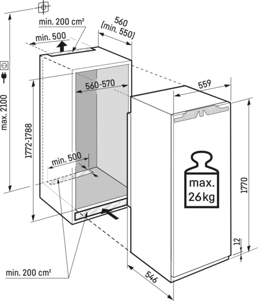 | Додатково | Великі вбудовані холодильники, Вузькі вбудовані холодильники |