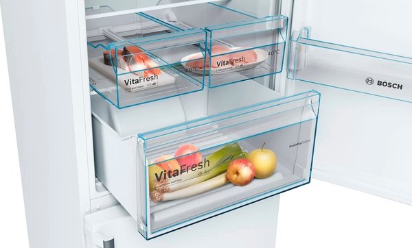 Купити свіжі продукти - це одне, інша справа - зберегти їх свіжість. Відділення VitaFresh допоможе вам зберегти свіжість ваших продуктів значно довше. Завдяки двом різним кліматичним зонам, вони завжди підтримують оптимальні умови зберігання. Одна зона з низькою температурою, яка становить близько 0°C, де можна гігієнічно зберігати рибу та м'ясо у двох окремих відділеннях. Це допомагає уникнути поширення запахів. І зона вологості: велике відділення, спеціально розроблене для фруктів і овочів. Умови вологості у відділенні можна регулювати, вибираючи між двома параметрами, що сприяє кращому збереженню вітамінів і мінералів. Щоденне здорове харчування ще ніколи не було таким простим.