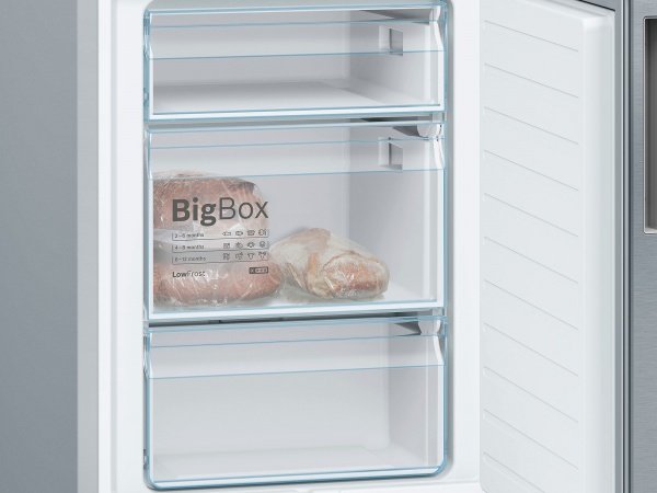 У морозилці передбачений глибокий і широкий контейнер, в який можна «упакувати» продукти великого розміру. В відділення BigBox можна помістити тушку гусака або індички.