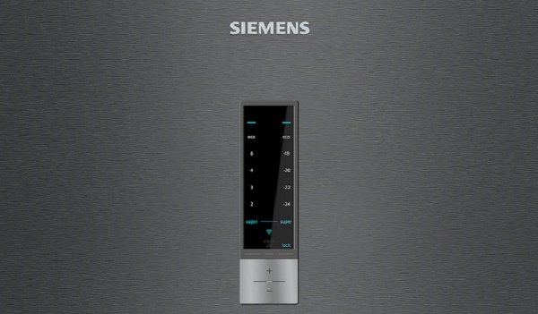 Холодильник Siemens KG49NXX306 досить місткий, виробник не пошкодував металу на високоміцний сталевий корпус. Дверцята з інтегрованими ручками – стильне дизайнерське рішення, при бажанні їх можна перенавесіть. У верхній частині холодильника розташований дисплей. На ньому можна виставляти температуру двох відсіків окремо, регулювати інші налаштування.