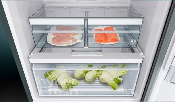 Siemens KG-306 выбирал исходя из соображений экономии, палитры цвета и объема холодильника. Должен отметить, что нижнее расположение морозильной камеры гораздо удобнее, чем верхнее. Удобно, что морозилка поделена на три ящика, они прозрачные - через пластик хорошо просматривается какие продукты внутри, запахи не смешиваются, материал не скрипит при извлечении. Верхняя камера просторная и светлая, понравилось использовать зоны свежести, овощи и фрукты хранятся дольше. Охлаждение равномерное, продукты, что находятся рядом со стенками не подмерзают. От запахов еды, что так или иначе будут накапливаться спасет фильтр, что очищает воздух. Покупал на этом сайте по совету сестры