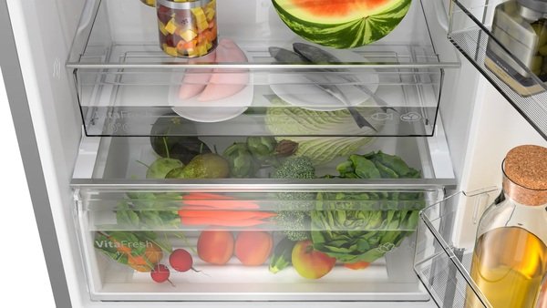 Постійна температура в камері холодильника – вирішальний фактор у досягненні тривалого терміну зберігання продуктів. Датчики FreshSense постійно контролюють та підтримують температуру в холодильному та морозильному відділеннях. Таким чином, продукти будуть знаходитися в ідеальному стані, коли Ви захочете їх приготувати.