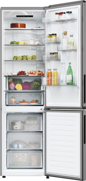 Цей 60-сантиметровий комбінований холодильник має об’єм 409 літрів і пропонує ще більше місця для зберігання продуктів. Крім того, завдяки великим ящикам морозильної камери у вас є додатковий простір для об’ємних продуктів.