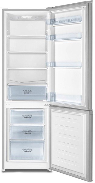 Тихо работает, немного шумит только когда набирает температуру после отключения света. Морозильная камера примерно за час до -18 охлаждается, холодильная в разы быстрее. Держит холод внутри долго, если не открывать двери что часов 10-12 течь не будет. Дверцы можно повесить не левую сторону, открываются с усилием, резинки крепко держат. Зона свежести только одна, из-за этого есть дополнительная полочка в холодильной камере