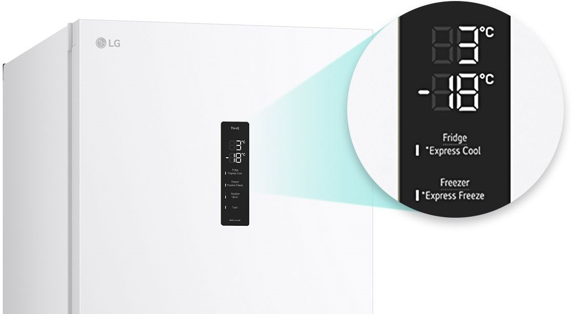 З технологією LG ThinQ Ви можете налаштувати параметри температури холодильної та морозильної камер, активувати режим "Швидка заморозка" та самостійно діагностувати незначні проблеми безпосередньо зі свого смартфона.
