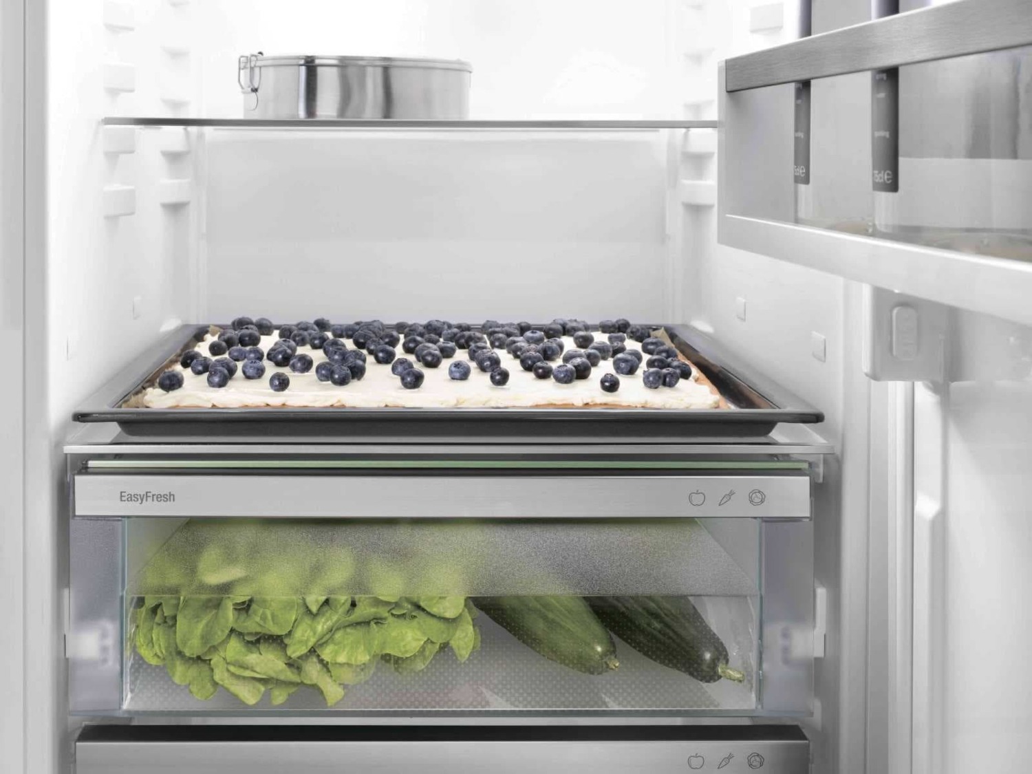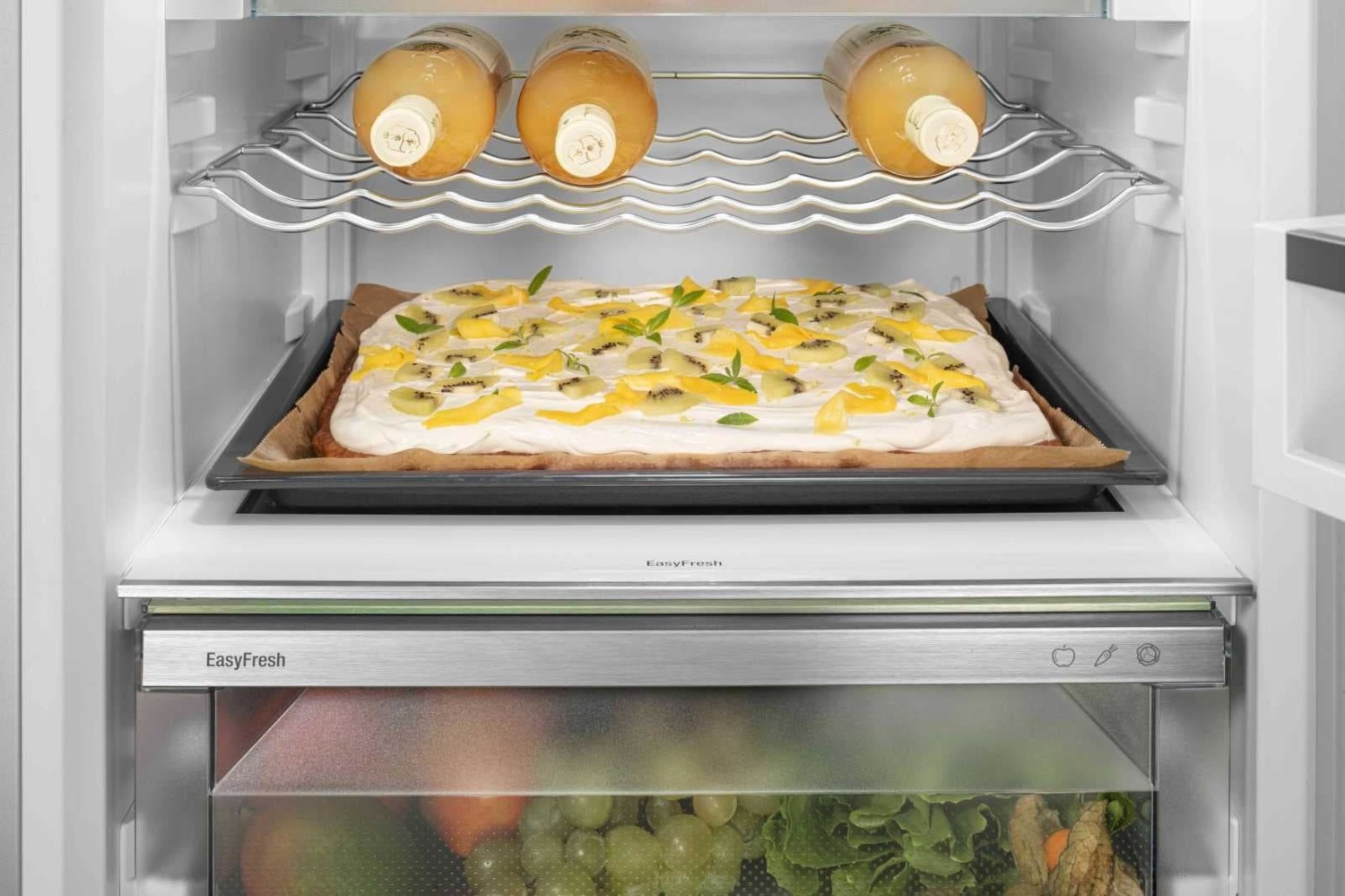 Відділення EasyFresh довго зберігатиме свіжість ваших продуктів. Тут забезпечуються оптимальні умови зберігання для незапакованих овочів і фруктів. Кришка щільно прилягає, завдяки чому для продуктів забезпечується належний рівень вологості. Так продукти довше залишаються свіжими.