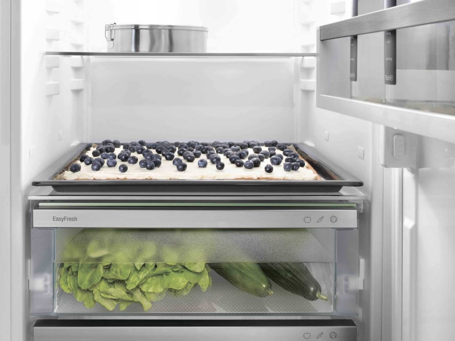 Гарантія ринкової свіжості у вас вдома — це контейнер EasyFresh-Safe. Незалежно від того, чи зберігаєте ви овочі або фрукти без упаковки, він створює ідеальні умови для їх зберігання. Завдяки герметичному закриттю, продукти підвищують вологість усередині відсіку, що дає змогу зберігати їх свіжими значно довше.