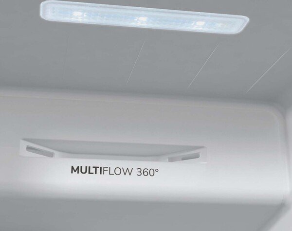 Система вентиляції MultiFlow 360° рівномірно розподіляє повітря всередині холодильного відділення, забезпечуючи оптимальну циркуляцію повітря та найкращі умови для зберігання продуктів.