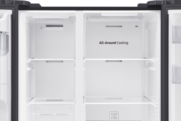 Гарантує, що вся ваша їжа належним чином охолоджена. Система всебічного охолодження рівномірно охолоджує кожне відділення від кута до кута. Вона постійно перевіряє температуру та забезпечує циркуляцію холодного повітря через оптимально розташовані вентиляційні отвори.