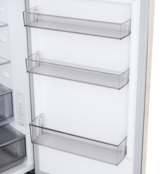 Інверторний компресор адаптується до навантаження, зменшуючи вібрації та шум до 35 дБ, що важливо для відкритих кухонь. Експрес-охолодження та експрес-заморозка активуються для термінових потреб, наприклад, при поверненні з магазину з великою кількістю продуктів. Антибактеріальний ущільнювач Bio Shield блокує розвиток мікробів на гумках, підтримуючи гігієну всередині.