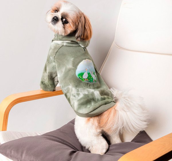 Оригінальне худі з трендовим принтом тай-дай та аплікацією з непереможними українськими гусьми! Для найкрасивіших українських хвостиків ця модель - "маст хев" у повсякденному гардеробі, бо тепла, приємна до тіла і має неперевершений вигляд. Худі тепленьке, бо зшите з м'якого і щільного трикотажу, капюшон стане в пригоді у вітряну погоду або в холодний день, прекрасно захистить шию і вушка вихованця. Гумки на рукавах і подолі роблять модель ще більш комфортною. Завдяки еластичності тканини худі легко надіти через голову.