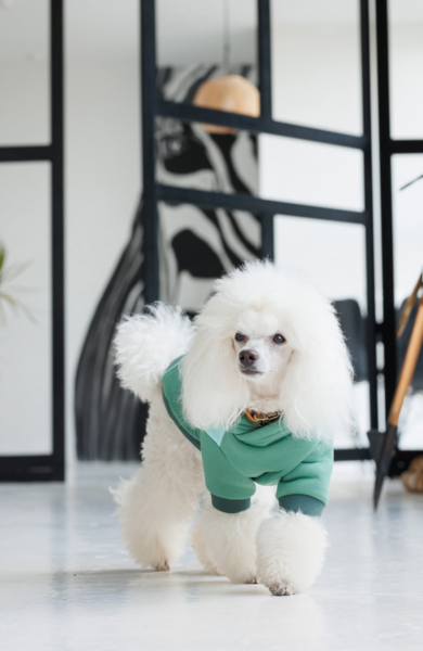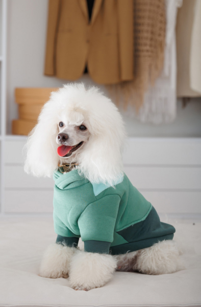 Це вбрання поєднує три відтінки зеленого – глибокі спокійні кольори, які допомагають налаштуватися на цікаву й захопливу прогулянку. Комусь ці барви нагадають Карпати, комусь – безкраї українські лани, комусь – улюблену місцину на березі річки чи озера. Але головне, що у вашого хвостика це зручне й тепленьке вбрання буде викликати асоціації з приємною прогулянкою та іграми. Модель максимально комфортна для хвостиків, які полюбляють активне дозвілля. Теплий матеріал надзвичайно приємний, ніжний до тіла. Худі не стримує рухи песика, м’яка тканина еластична, тому вдягати вбрання через голову дуже легко. Манжети на рукавах та гумка на поясі захистять від поривів холодного вітру, а капюшон прикриє вушка та шию.