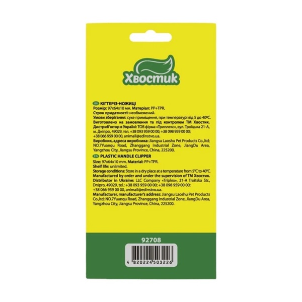 Кігтеріз-ножиці — інструмент для зручного та безпечного підстригання кігтів у котів та собак дрібних порід. Регулярний догляд за кігтями є важливою складовою здоров’я та комфорту домашніх тварин. Надмірно довгі кігті можуть ламатися, вростати у подушечки лап, викликати біль і дискомфорт під час руху. Своєчасне підстригання допомагає уникнути цих проблем і забезпечує улюбленцю комфортну активність щодня. Кігтеріз-ножиці Хвостик оснащені гострими лезами з нержавіючої сталі у формі півмісяця, які забезпечують чистий та акуратний зріз без розщеплення кігтя. Компактний розмір дозволяє точно контролювати кожен рух, що особливо важливо для котів та собак дрібних порід. Продумана конструкція ножиць дозволяє надійно зафіксувати кіготь перед зрізом, забезпечуючи стабільність і точність. Ергономічна форма ручок сприяє комфортному утриманню інструмента та зменшує навантаження на руку, роблячи процес менш стресовим як для тварини, так і для власника.