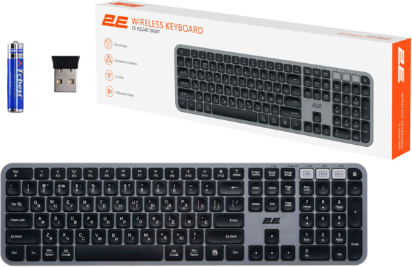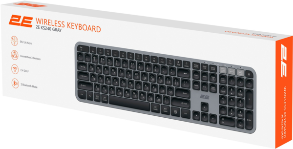 Клавіатура 2E KS240 WL BT EN/UKR Grey (2E-KS240WG_UA)