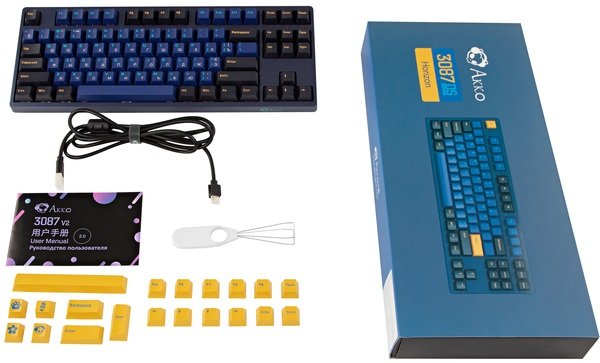 Клавіатура Akko 3087 Horizon – одна з найпопулярніших клавіатур серії Akko 3087, в яку увійшли дизайнерські механічні клавіатури з розкладкою на 87 клавіш – оптимальний розмір як для ігор, так і для роботи. З огляду на компактність і невелику вагу, ці кейборди зберігають сполучення основних клавіш та клавіш зі стрілками. На створення механічної клавіатури Akko 3087 Horizon розробників надихнули синьо-жовті кольори природи на горизонті, коли вранішнє сонце сходить над водоймами. Загалом кольорова гама переважно темно-синя, а різні відтінки символізують схожість неба та води. Унікальне поєднання краси природи та кольорів, що зробить ігровий простір яскравим та унікальним.