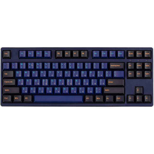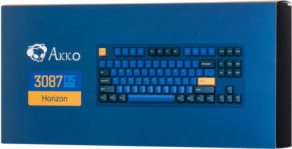 Akko Horizon 3087, не втрачаючи жодного міліметра простору, відмінно використовує свій середній форм-фактор. Він містить 87 клавіш, включаючи стрілки, цифри та повний набір функціональних клавіш у верхньому ряду. Дизайн Akko 3087 Horizon натхненний сходом сонця на морі. Загальний колір переважно темно-синій, а різні відтінки синього символізують поєднання неба та океану. Жовті ковпачки подібні до сонця, що сходить, і відображення золотого сонячного світла в морі. Ця унікальна краса сходу сонця яскрава і сповнена надій, що завжди приносить задоволення, коли ви її використовуєте.