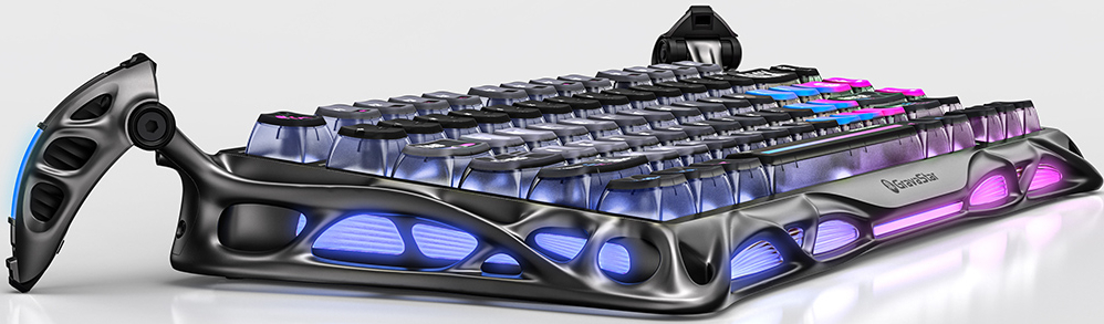 Mercury K1 Pro викуваний з міцного, але легкого алюмінієвого сплаву для ідеального балансу міцності та портативності. Розгалужений каркас підтримує і стабілізує кожне натискання клавіш з елегантною симетрією, яка майже здається живою, наче вона все ще перебуває в русі, постійно переформовуючись. Еволюціонує. Вам краще пильно стежити за цим.