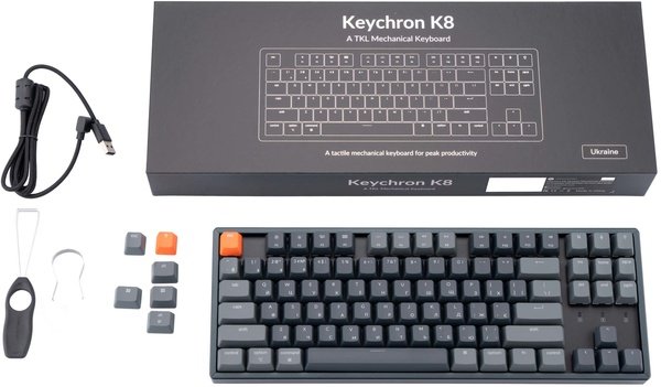 Бездротова механічна клавіатура Keychron K8 Tenkeyless комплектується ковпачками клавіш для Windows і macOS, а завдяки версії з можливістю гарячої заміни користувачі можуть за лічені секунди замінити кожен перемикач.