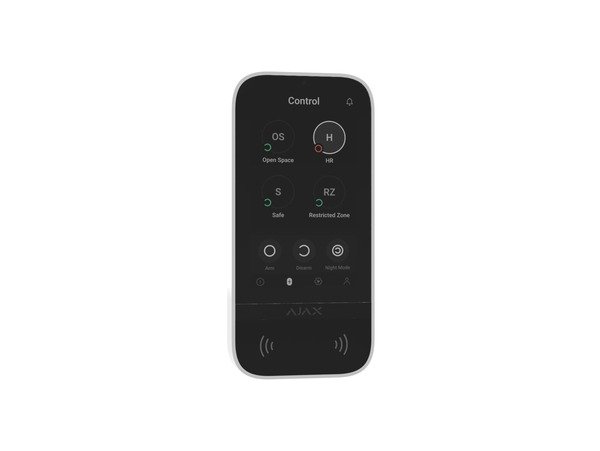 Описание товара Ajax Клавіатура з сенсорним дисплеєм KeyPad TouchScreen, jeweller, бездротовий, білий