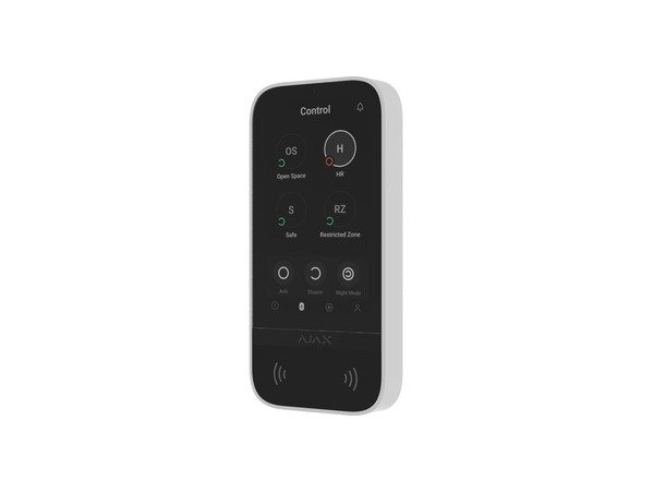 Ajax KeyPad TouchScreen є бездротовою клавіатурою з сенсорним екраном для управління системою безпеки Ajax. Вона підтримує радіопротоколи Jeweller та Wings. Сенсорний екран є ємнісним і має діагональ 5 дюймів з роздільною здатністю 480 × 854 пікселів. Клавіатура дозволяє безконтактний доступ за допомогою карток і брелоків, а також підтримує Bluetooth low energy (BLE). Живиться від 6 батарейок типу AA, а також може працювати від зовнішнього джерела живлення напругою 10,5–14 В і струмом до 0,5 А. Розміри клавіатури становлять 171,5 × 82,1 × 26 мм, вага - 327 г.