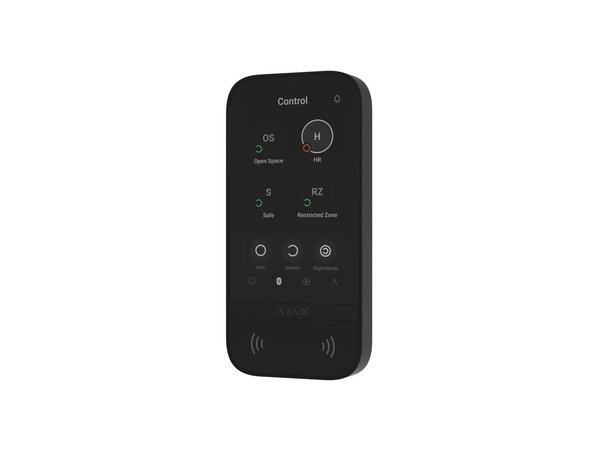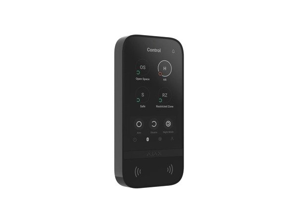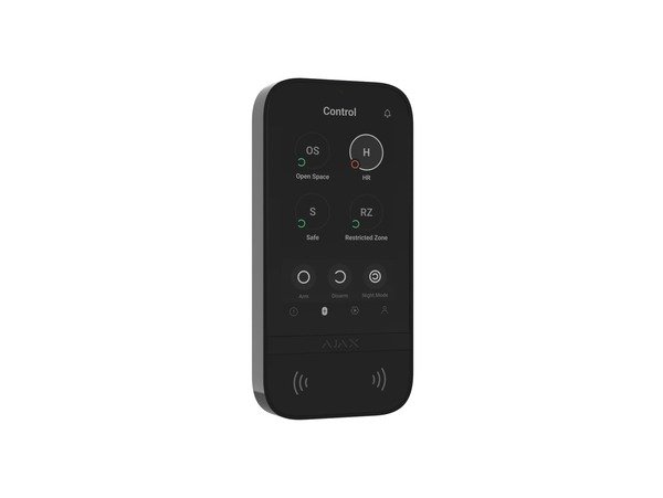 Ajax KeyPad TouchScreen є бездротовою клавіатурою з сенсорним екраном для управління системою безпеки Ajax. Вона підтримує радіопротоколи Jeweller та Wings. Сенсорний екран є ємнісним і має діагональ 5 дюймів з роздільною здатністю 480 × 854 пікселів. Клавіатура дозволяє безконтактний доступ за допомогою карток і брелоків, а також підтримує Bluetooth low energy (BLE). Живиться від 6 батарейок типу AA, а також може працювати від зовнішнього джерела живлення напругою 10,5–14 В і струмом до 0,5 А. Розміри клавіатури становлять 171,5 × 82,1 × 26 мм, вага - 327 г.