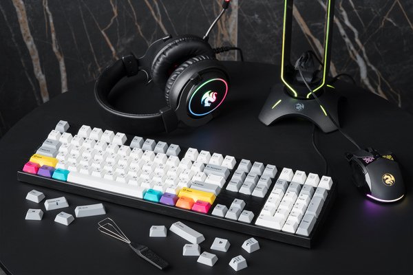 Поєднання стабілізаторів та мастила дозволяє досягти максимально рівномірного та плавного ходу клавіш enter/space/shift/backspace, а самі клавіші легко зняти з клавіатури. Біле підсвічування