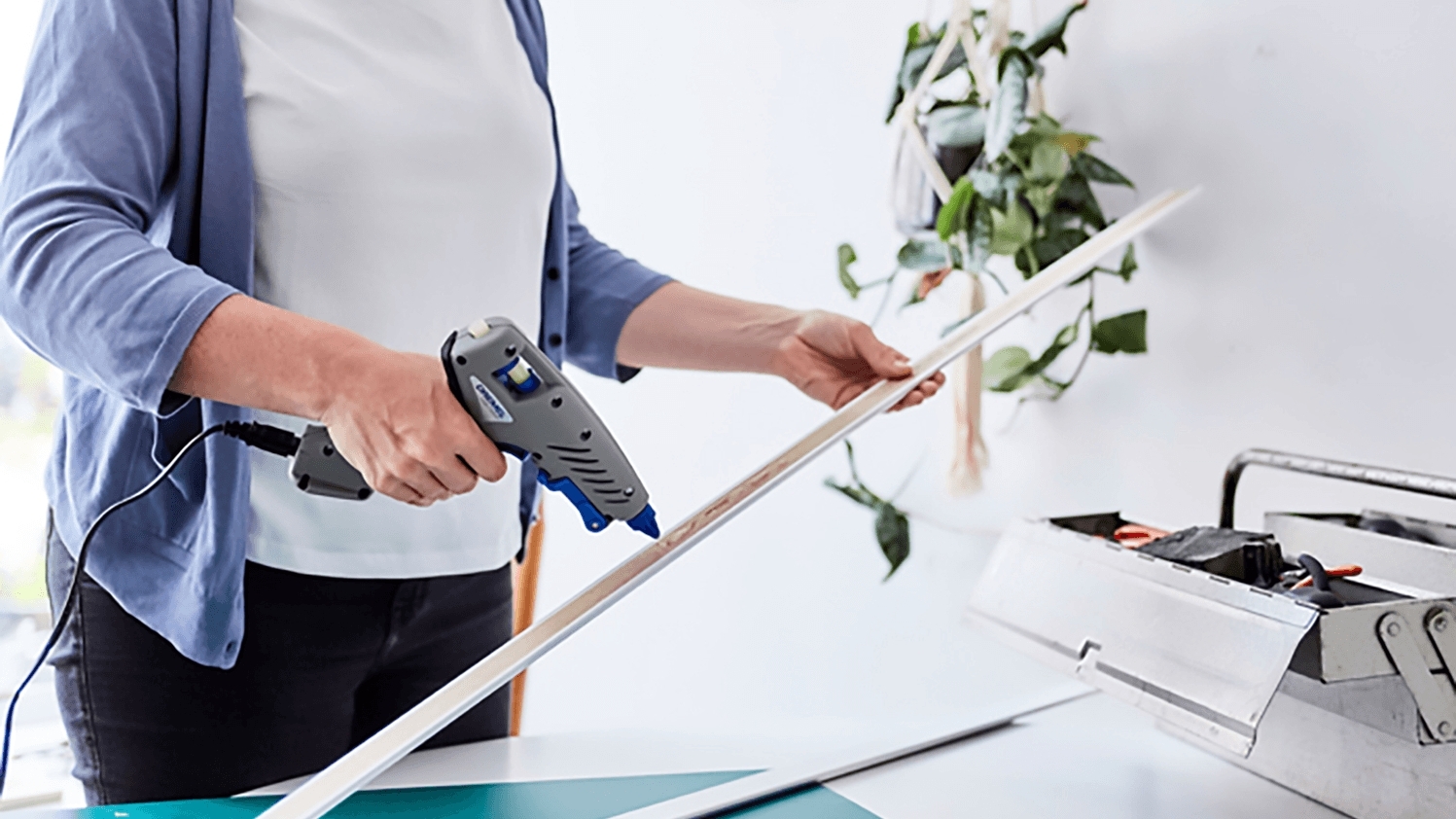 Високотемпературний клейовий пістолет - для всіх видів робіт всередині та поза приміщеннями. Наносьте клей на різні матеріали, такі як кераміка, дерево, пластик, скло.