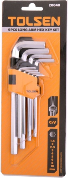 Ключі шестигранні Tolsen, набір 9шт, довгі, 1.5-10мм, CrV (20048)