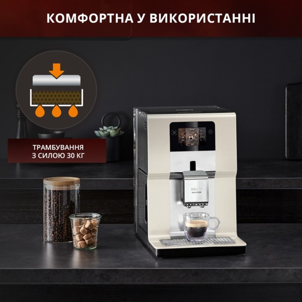 Лінійка Intuition від Krups дуже ретельно продумана. Усе для того, щоб процес приготування вашої ідеальної кави щоразу був одночасно дуже простим і максимально персоналізованим. Реалістичний інтерфейс як у смартфона зі збільшеним сенсорним екраном має поліпшені налаштування персоналізації та інтуїтивно зрозумілі світлові індикатори — все в розумному, зручному дизайні. Вам потрібно лише довіряти своїй інтуїції.