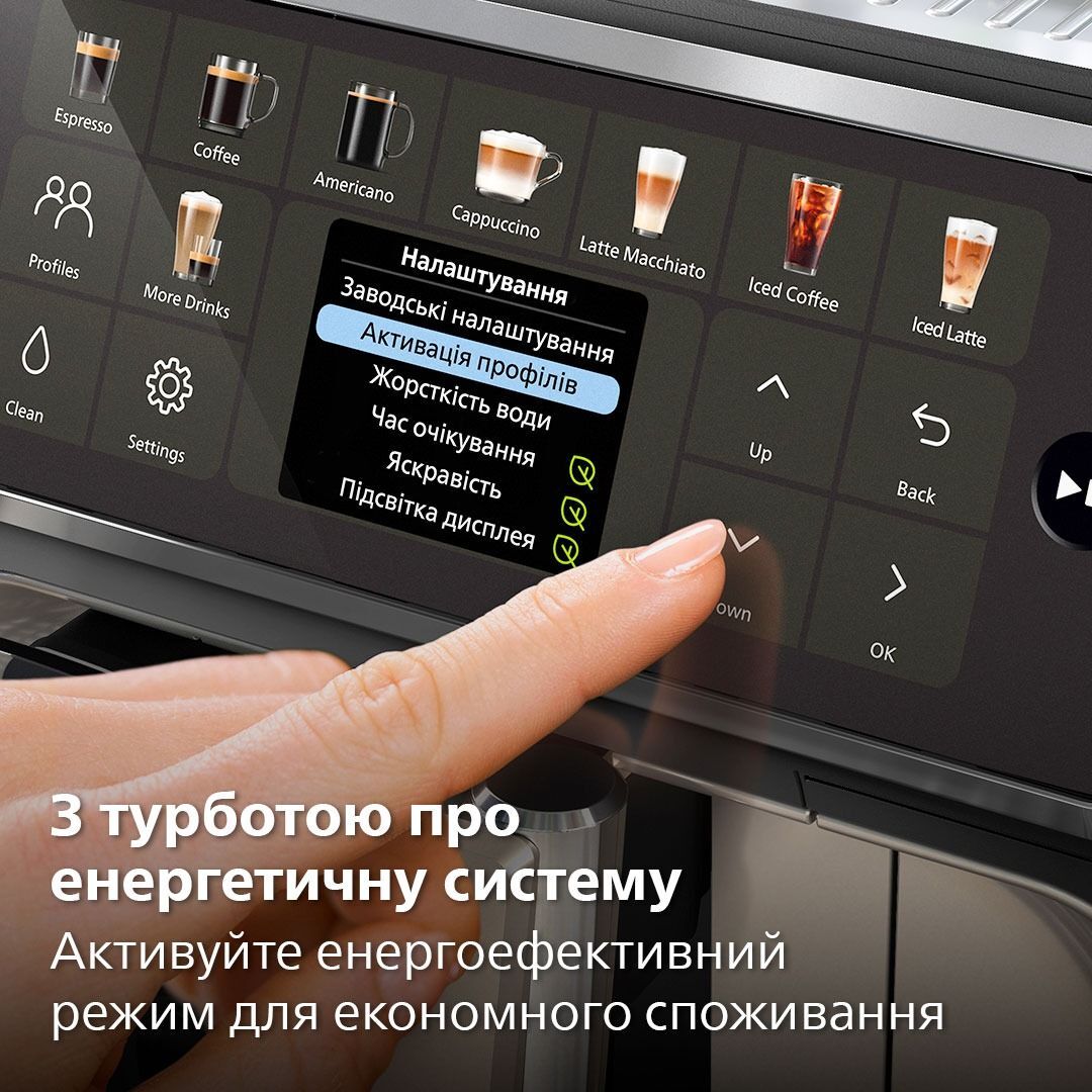 Зробіть будь-яку каву своєю улюбленою за допомогою простих налаштувань регулятора кави, зокрема насиченості, тривалості приготування кавових і молочних напоїв.