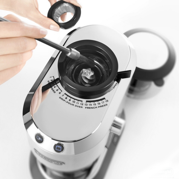 18 регульованих налаштувань помольних дисків дають змогу повністю контролювати ступінь помелу, щоб отримати по-справжньому персоналізований кавовий порошок.