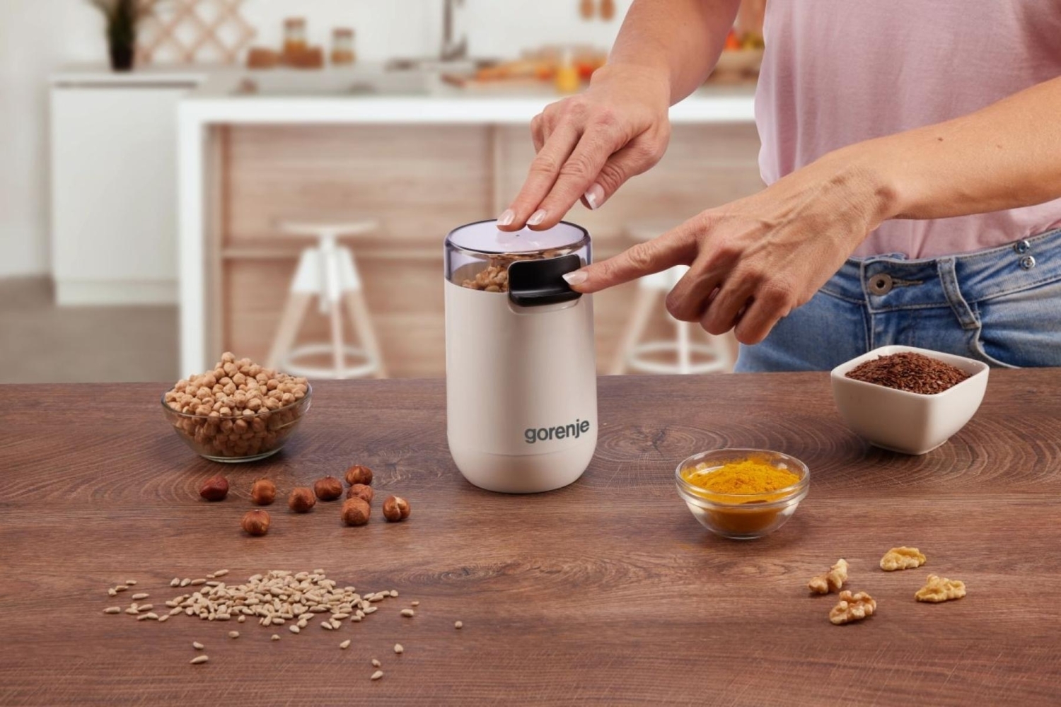 Універсальна кавомолка від Gorenje також дає можливість молоти спеції, зелень і горіхи. Приємно завжди мати під рукою свіжозмелені спеції та зелень.